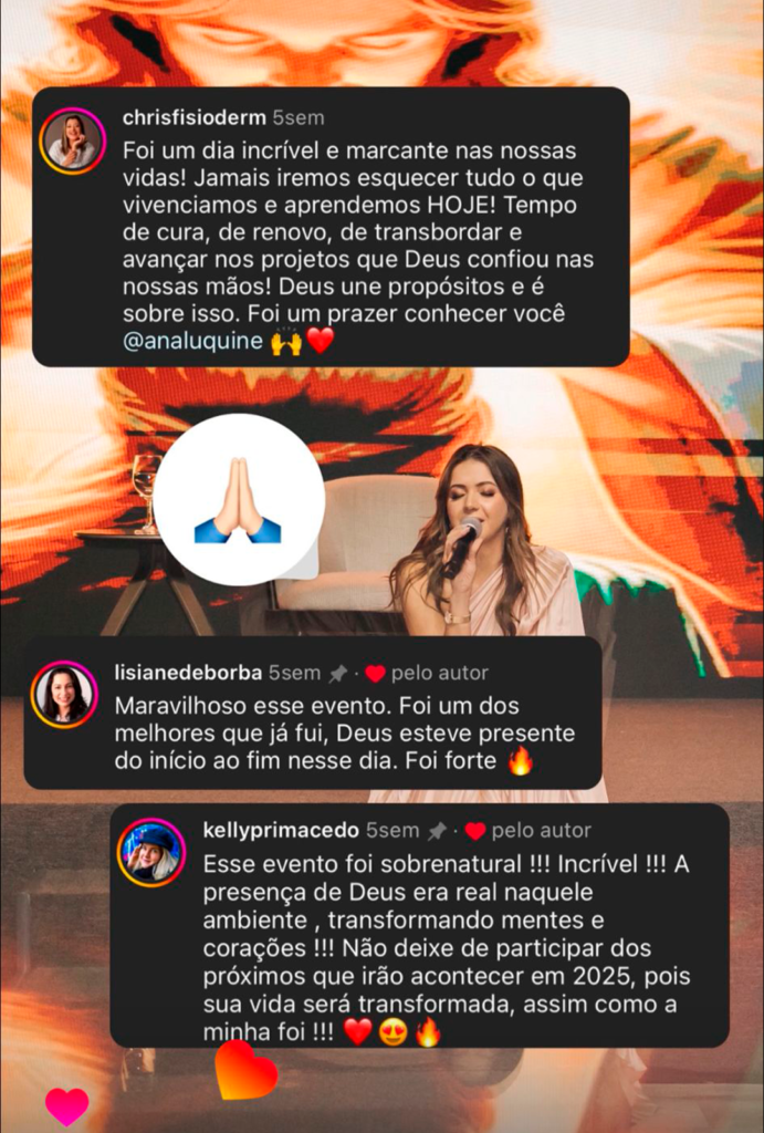 Network Exclusivo Uma oportunidade única de conhecer e se conectar com Ana Luquine e outras mulheres líderes presentes no evento.